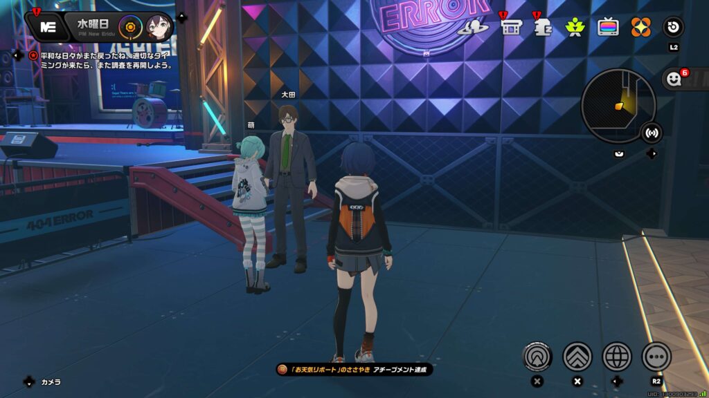 昼、「404」にいるお天気リポートのメンバーと7回話すとアチーブメント『「お天気リポート」のささやき』が取れます。