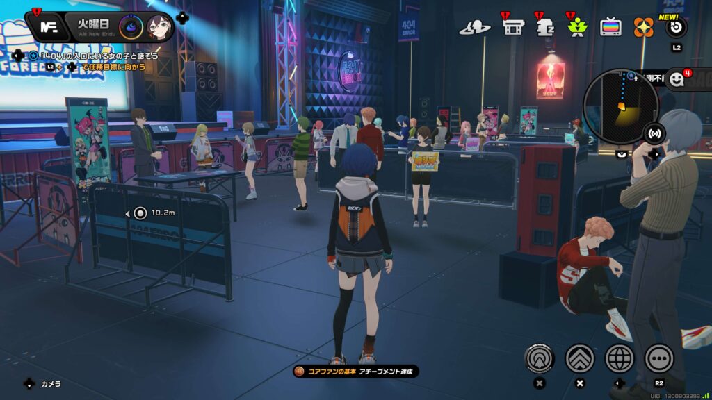 朝の「404」ステージにいるセシリアと話し、歌を聴くとアチーブメント「あと一億回聴きたい!」が取れます。