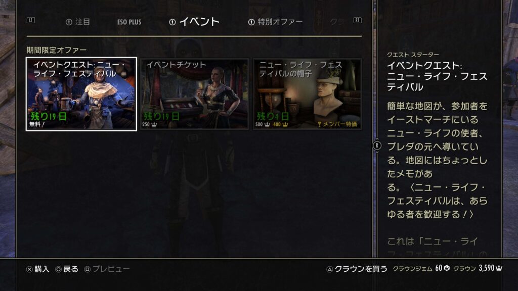 エルダースクロールズオンライン(ESO)では、2026年1月6日まで、イベント「ニュー・ライフ・フェスティバル」が開催中です!