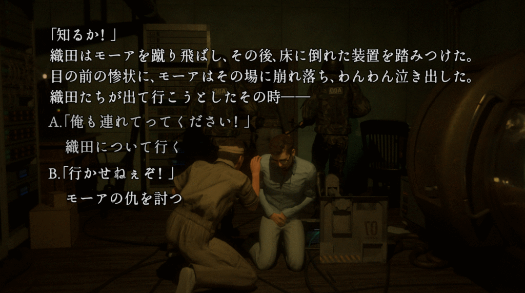 - B → 「107.投降の結果」へ。エンディング「投降の結果」