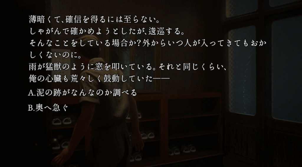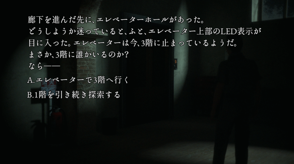 ※91.狂気(エンディング「精神錯乱した南極ペンギン」)で心印解除後に選択可能 - B → 「16.黒影追跡」へ
