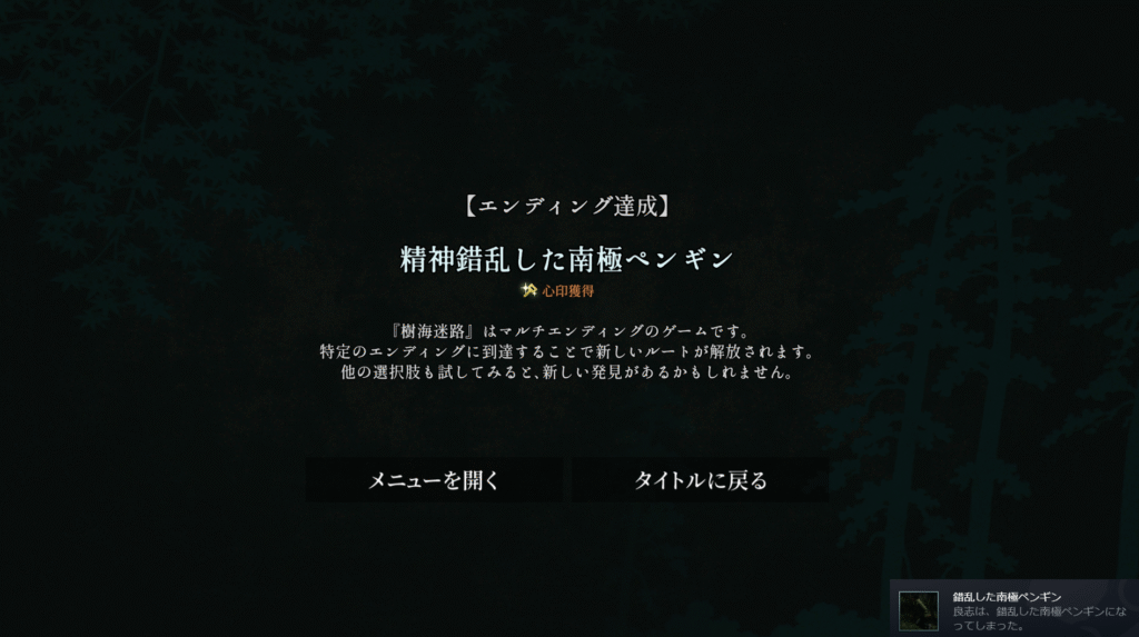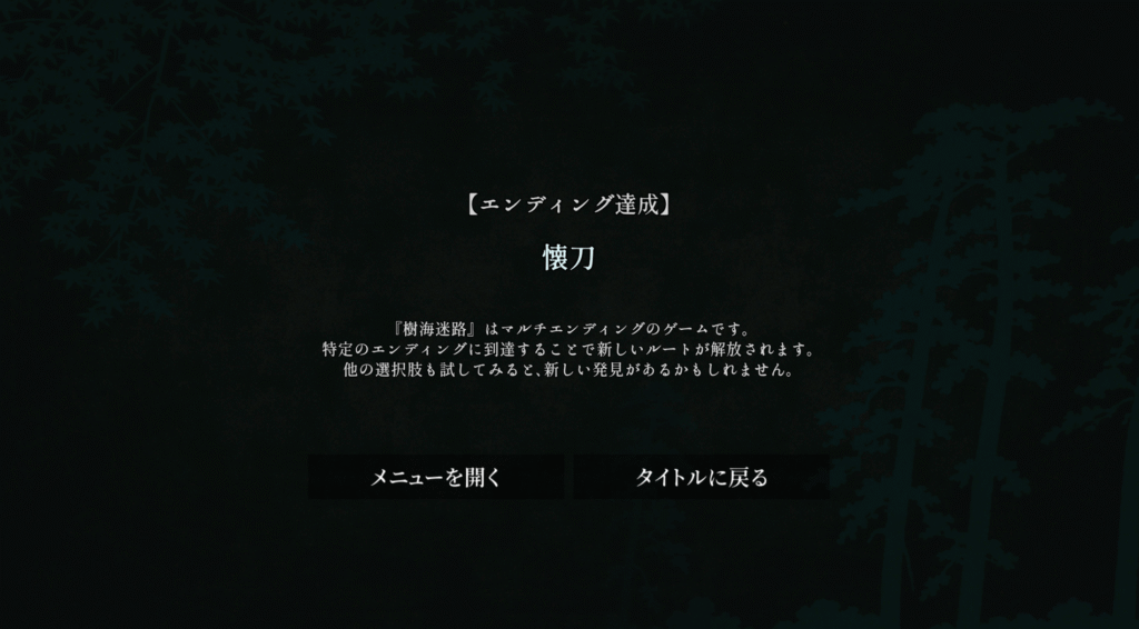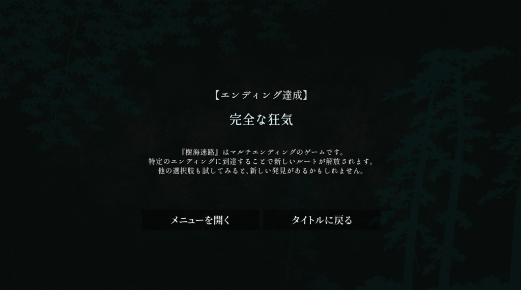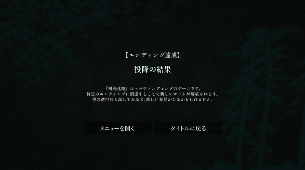 Steam向けアドベンチャーゲーム『樹海迷路』の全エンディング攻略チャートです。