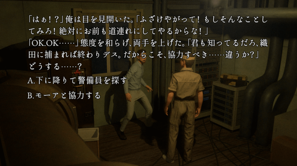 - B → エンディング「密告」