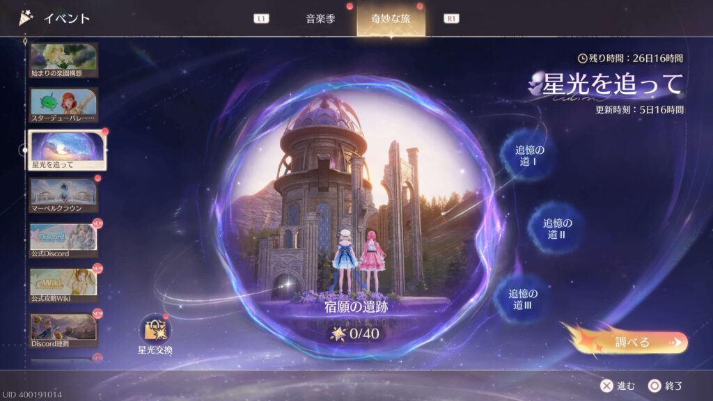 Ver1.9でも「星光を追って」は毎週更新なので、遊ぶのをお忘れなく!