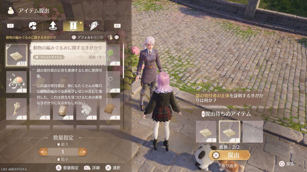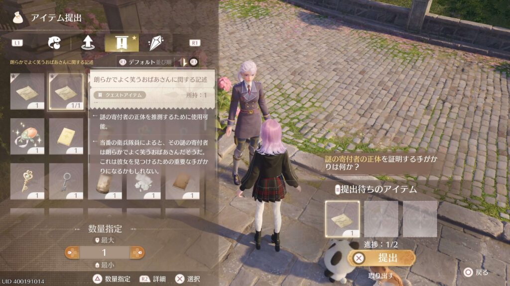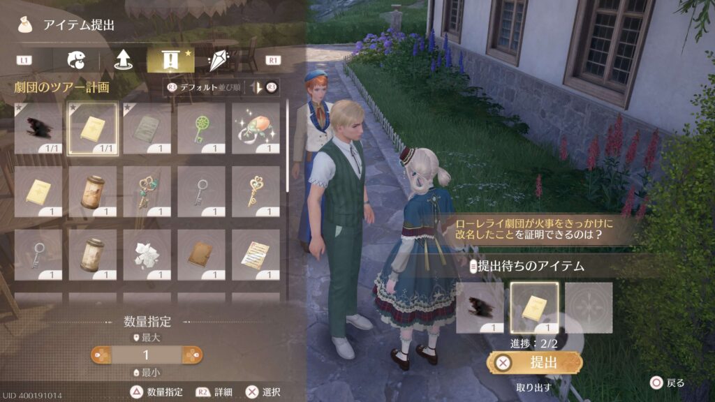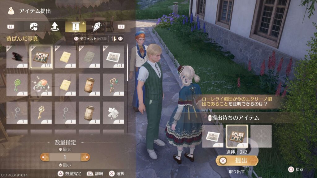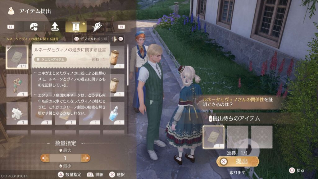 風物クエストの証拠品提出は、以下の画像を参考にしてください。