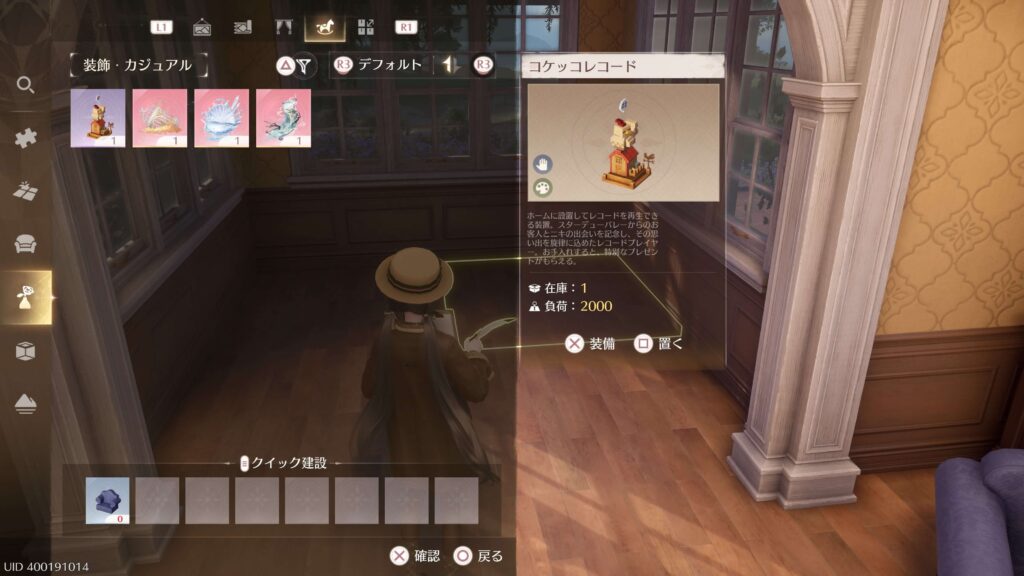 造具スキルで配置すれば、ホームのBGMを変更できますよ~。