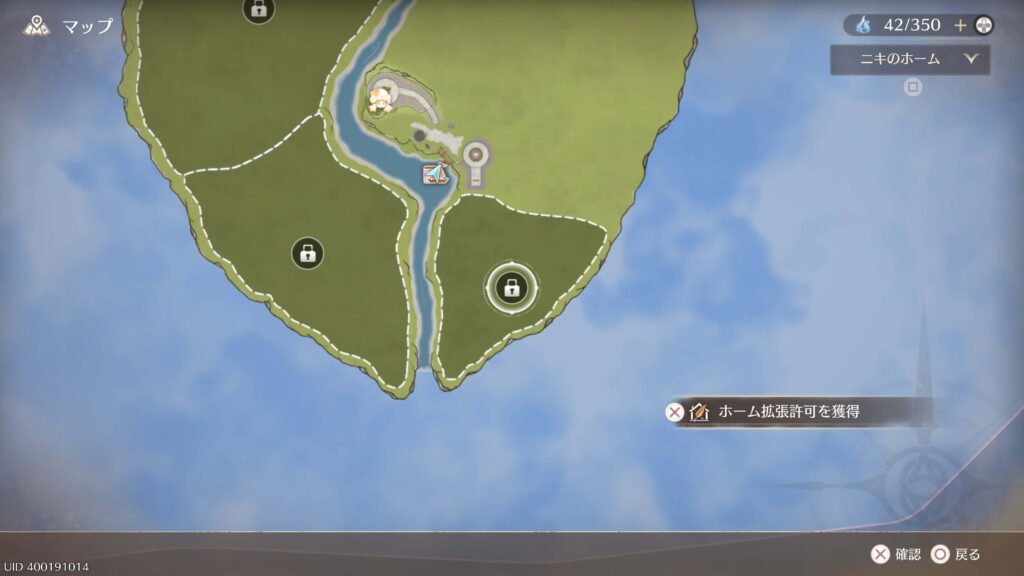 空島マップは結構広くて、「ホーム拡張許可」があると新たな地区が解放されるみたいです。