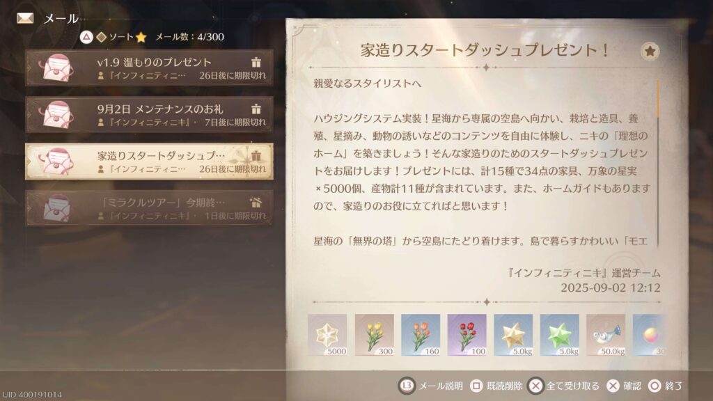 Ver.1.9ではハウジングシステム実装を記念して、家具などのアイテムが大量に配布されています。