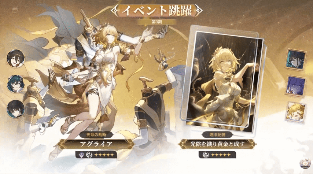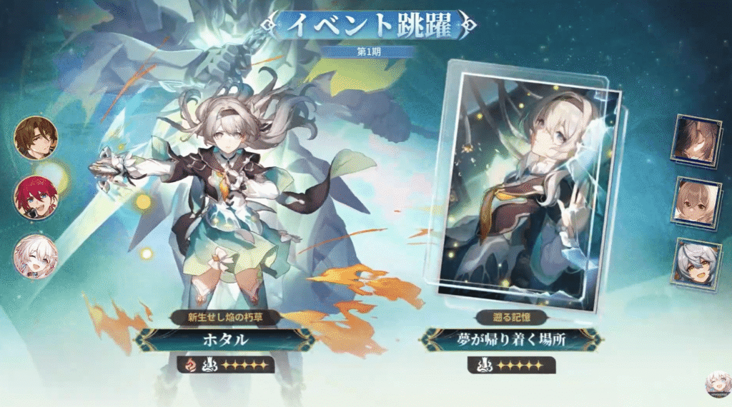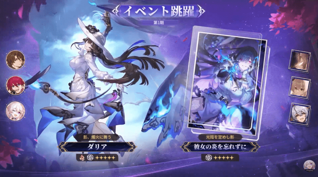 Ver.3.8 第1期のイベント跳躍は星5「ダリア」、復刻は「ホタル」です。
